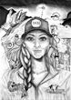 A mixture of ink and graphite drawings printed on bandanas, sweatshirts, hoodies, and t-shirts for a charity motorcycle event.